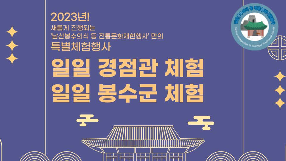 안녕하세요! 오늘은 남산봉수의식과 관련된 전통문화 재현행사에 대해 알아보려고 해요. 이 행사는 우리 전통문화를 직접 체험할 수 있는 좋은 기회이니, 많은 분들이 관심을 가져주셨으면 좋겠어요. 그럼 시작해볼까요? 😊