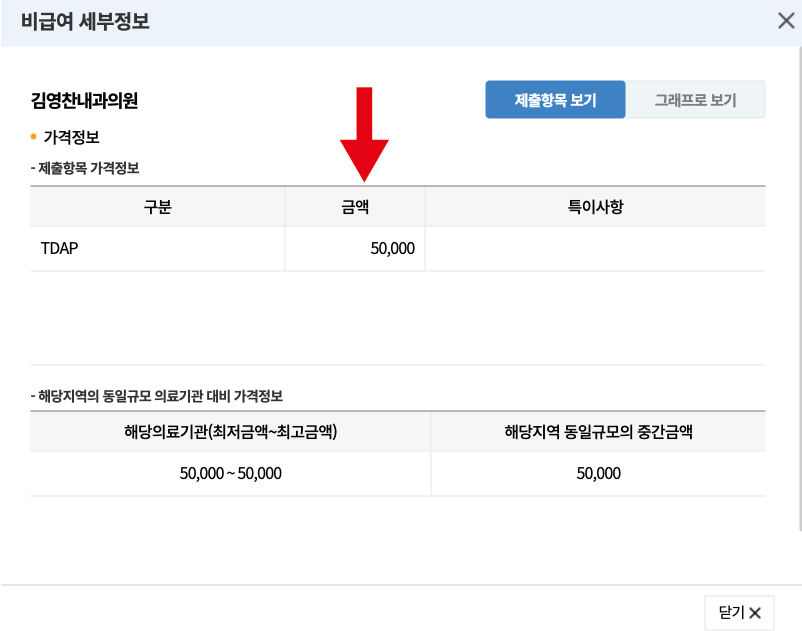 - 다음 화면에서 비급여 진료비용 정보 클릭