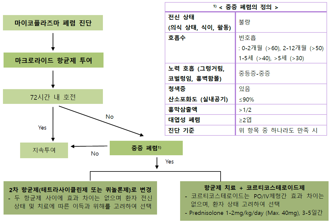 [3] 질병관리청 - 소아 중증 마이코플라스마 폐렴 환자 최적의 진료를 위한 ... (https://www.kdca.go.kr/filepath/boardDownload.es?bid=0015&list_no=724460&seq=2)