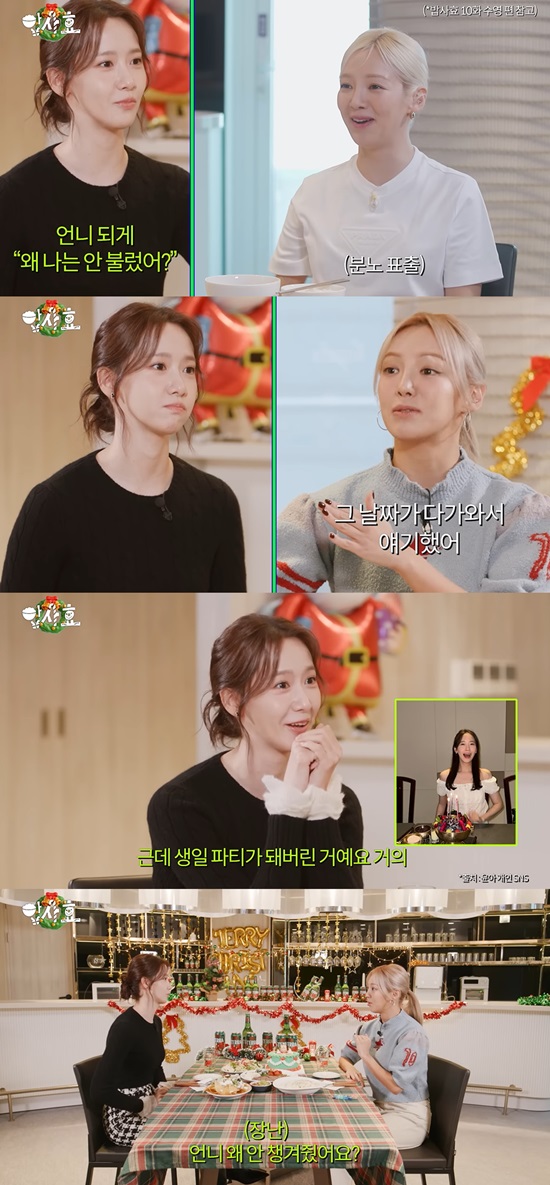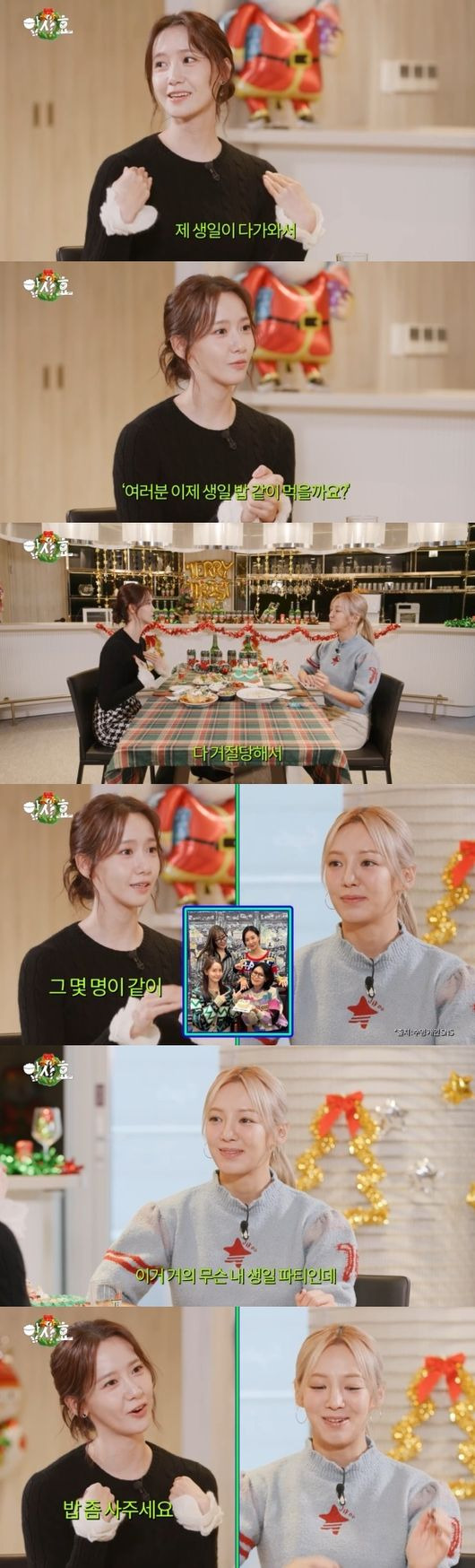 [2] 스포츠경향 - 윤아 “생일 약속 멤버들에게 거절당해…솔직히 섭섭” (밥사효) (https://sports.khan.co.kr/article/202412191050003)