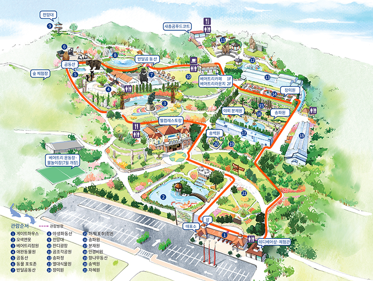 상단에 버튼을 통해서 베어트리파크 수목원 내부 가이드맵 설명을 보실수있습니다.