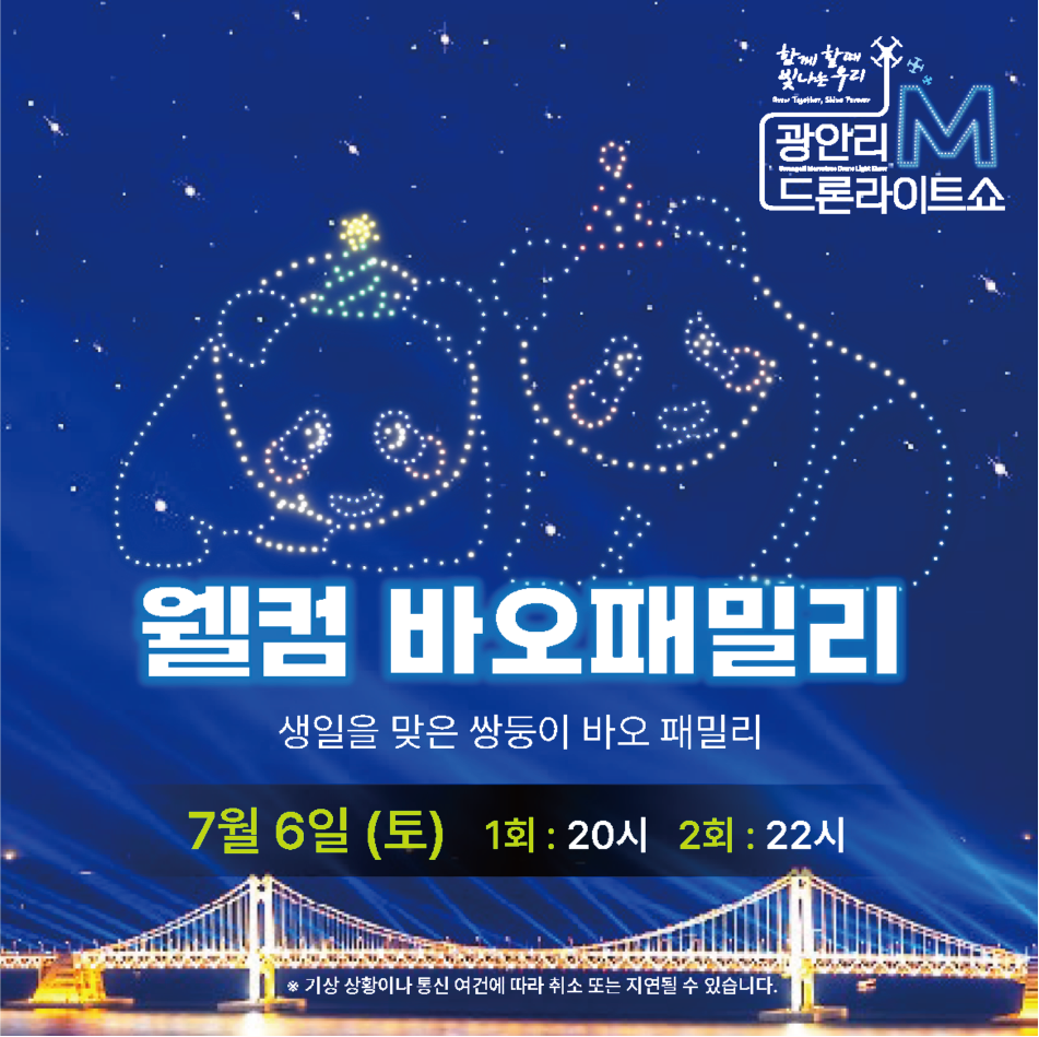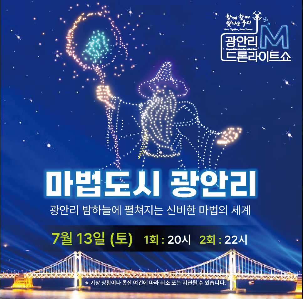 7월 13일(토) 1회:20시 2회 : 22시 -> 광안리 밤하늘에 펼쳐지는 신비한 마법의 세계, 마법도시 광안리