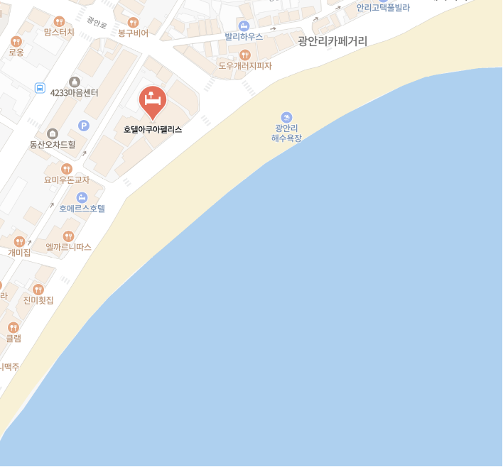뚜벅스는 광안리 드론라이트쇼 하면 바로 나오는곳이죠! 일단 낮에도 굉장히 이쁜편입니다. 해수욕장 가운데 쪽에 위치해있어서