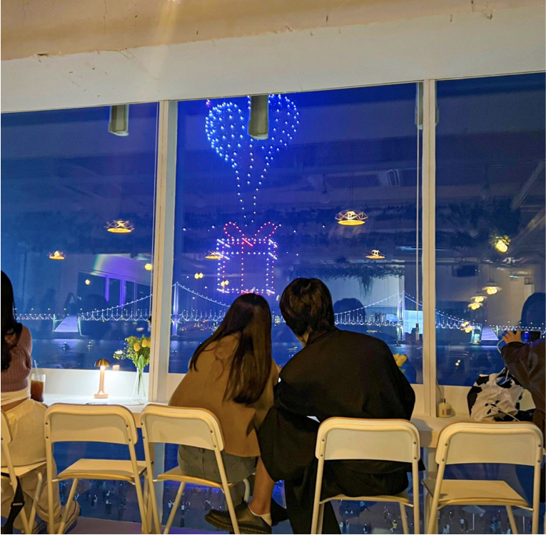 드론이 만들어내는 모양을 가장 확실하게 볼수있는 곳입니다.