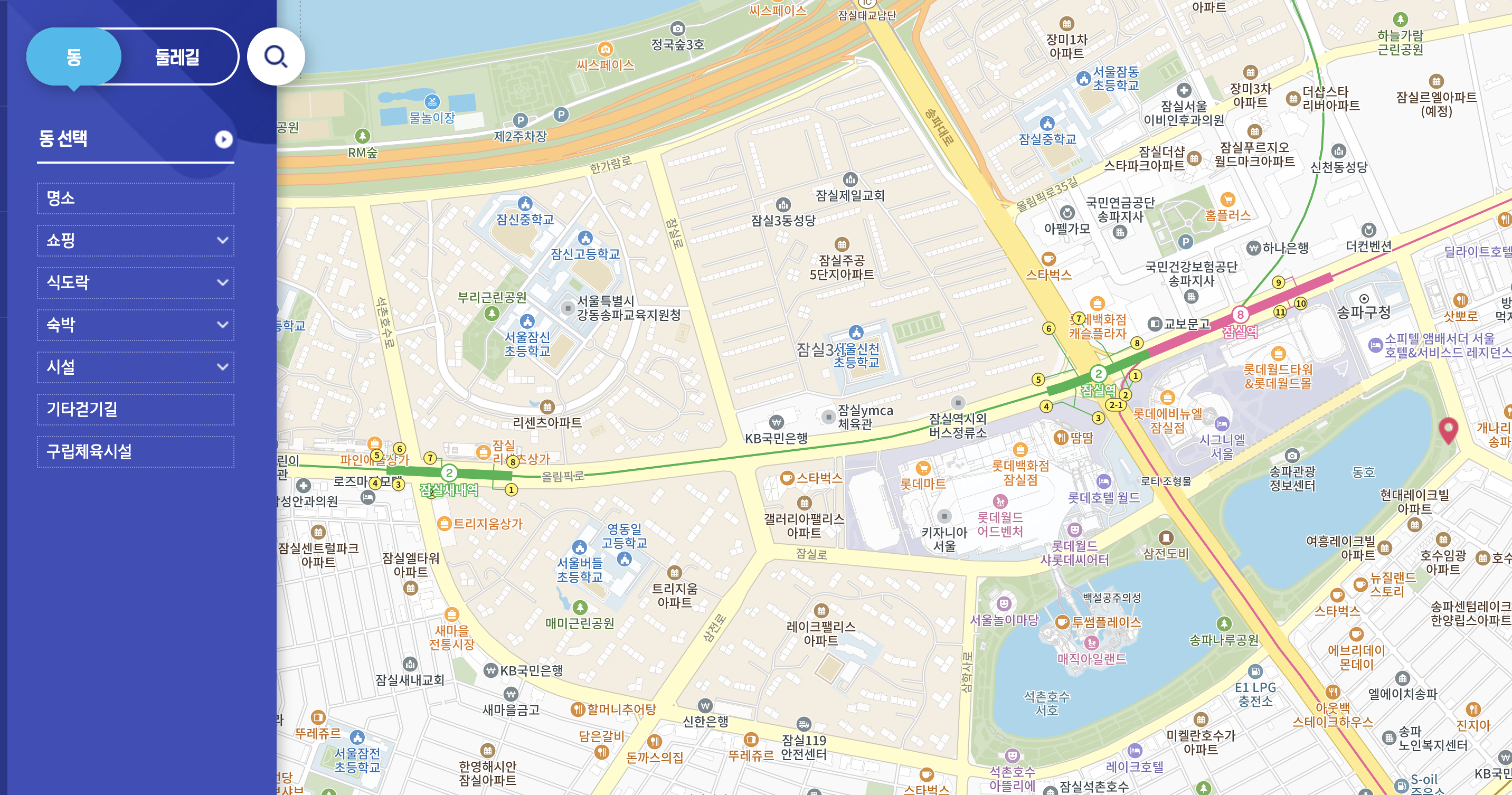 상단에 버튼을 확인하시면 석촌호수주변 정보를 확인하실수있습니다.