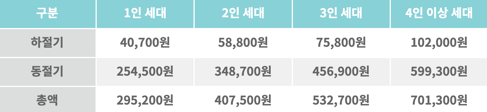 에너지 바우처 지원 금액은 가구원 수에 따라 다음과 같이 차등 지급됩니다.