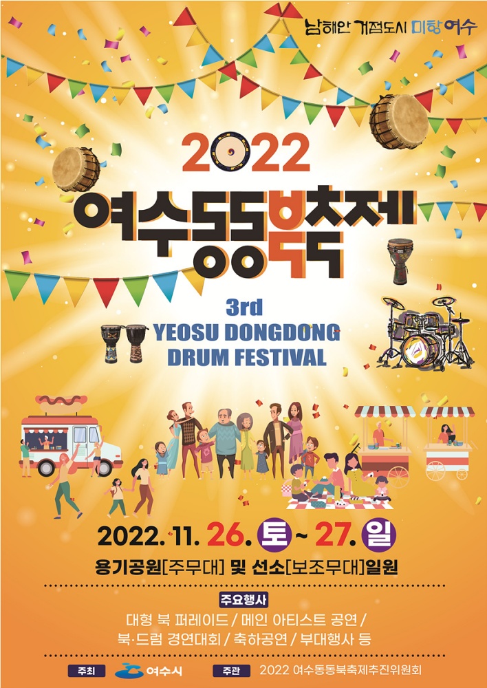 여수동동북축제의 하이라이트는 다양한 프로그램과 이벤트예요. 특히, 드럼 퍼포먼스와 함께하는 EDM 동동SHOW는 많은 관객들의 기대를 모으고 있어요. 또한, 축제 기간 동안 다양한 먹거리와 체험 부스도 마련되어 있어, 가족 단위 방문객들에게도 즐거운 시간이 될 거예요.