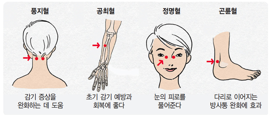 - 곤륜혈 : 발목에 위치한 혈자리로, 호흡기 문제에 효과적이에요.