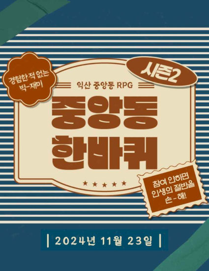 이번 '중앙동한바퀴 RPG 시즌 2'는 여러분에게 잊지 못할 경험을 선사할 것입니다. 많은 관심과 참여 부탁드려요! 감사합니다!