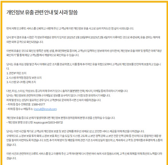 #인크루트 #개인정보유출 #취업정보 #해킹 #데이터보안 #구직자 #2차피해 #정보보호