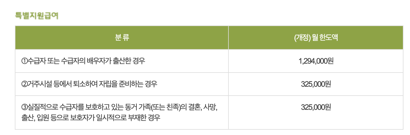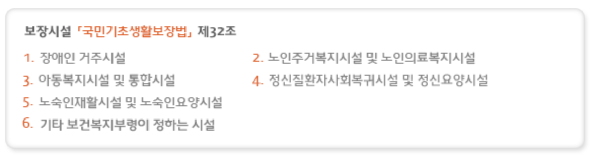 - 「국민기초생활 보장법 제 32조에 따른 보장시설에 입소중인 경우