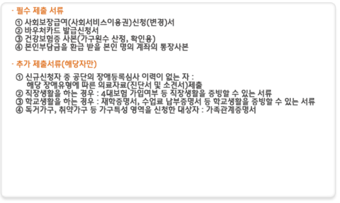 - 신청서류 : 사회보장급여(사회서비스이용권>신청(변경)서
