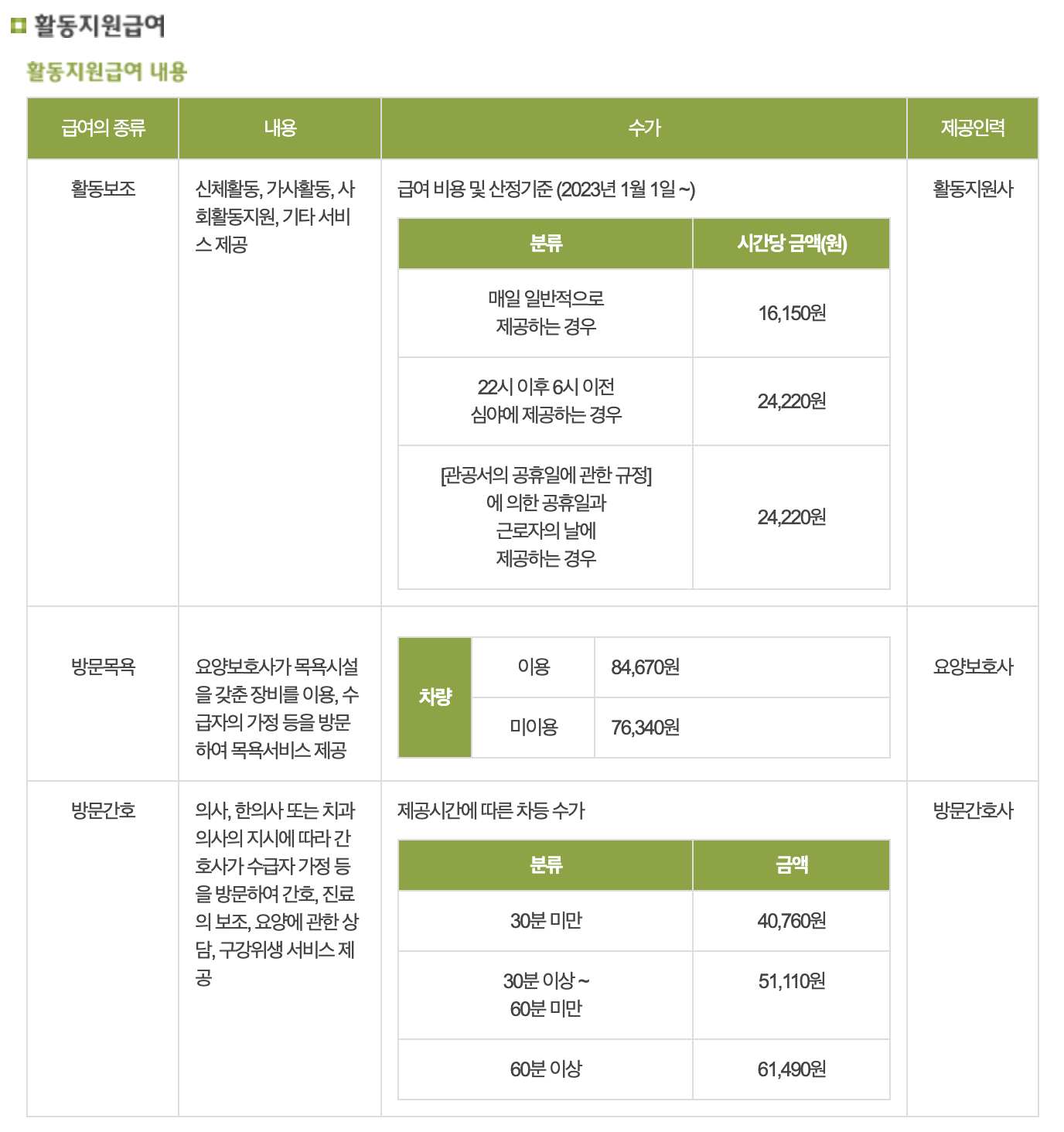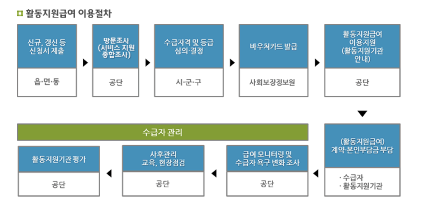 - 활동지원기관 : 수급자와의 계약 및 수급자의 희망급여에 대한 서비스 제공