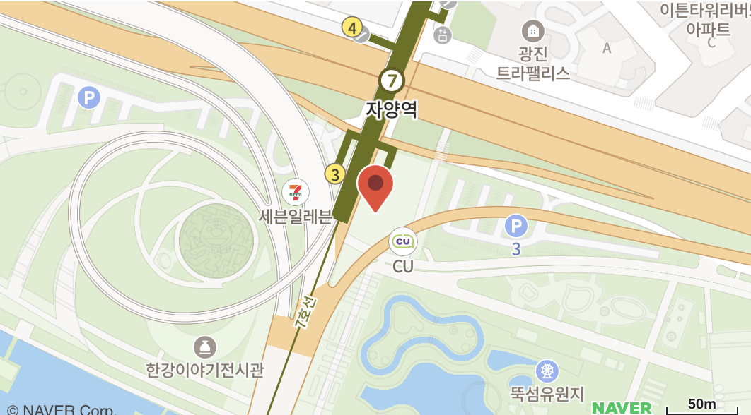 상단에 지도를 클릭하시면 네이버 지도(자양역)으로 바로가실수있습니다.