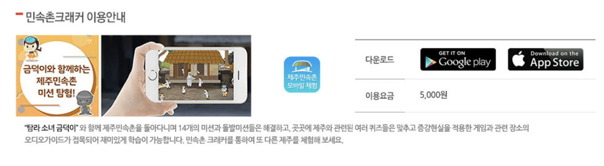 상단에 버튼을 확인하시면 제주 민속촌 모바일 체험 어플로 바로 가실수있습니다.