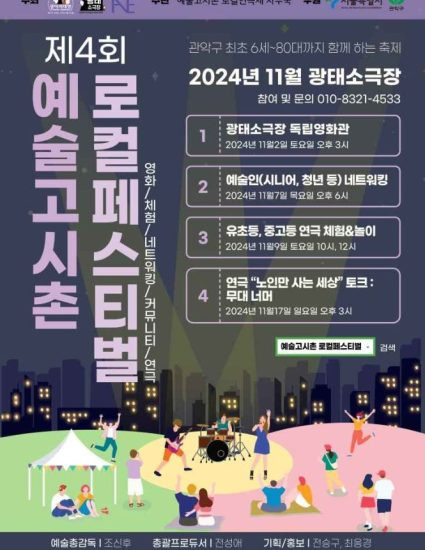 안녕하세요~ 여러분! 오늘은 2024년 예술고시촌 로컬페스티벌에 대해 자세히 알아보려고 해요. 🎉 이 축제는 서울 관악구에서 열리는 특별한 행사로, 지역 주민들과 예술가들이 함께 어우러지는 멋진 기회랍니다. 그럼, 하나씩 살펴볼까요?