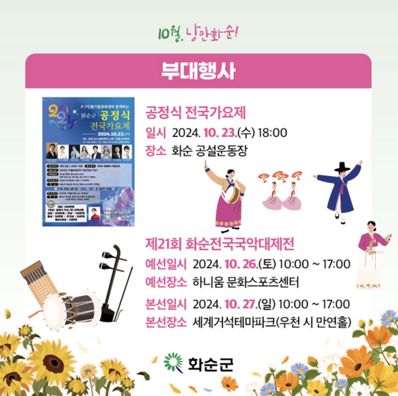 화순 고인돌 가을꽃 축제의 프로그램과 출연진