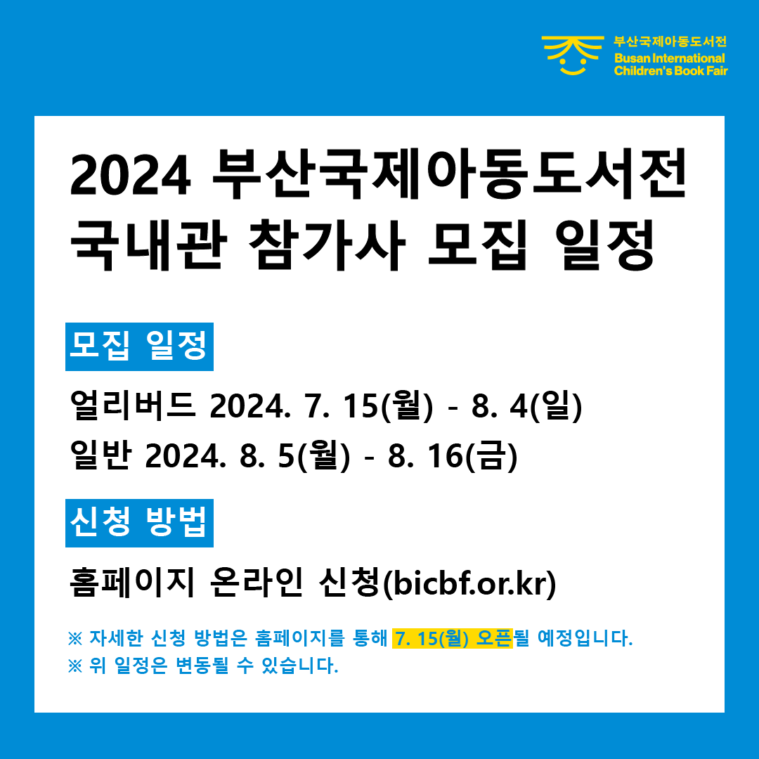 이번 2024 부산국제아동도서전은 많은 기대를 모으고 있는 만큼, 여러분과 가족들이 함께 즐길 수 있는 소중한 시간이 되길 바랍니다!
