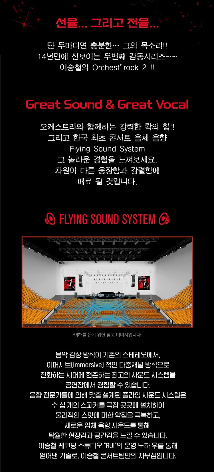 이번 콘서트는 단순히 이승철의 히트곡을 듣는 것에 그치지 않고, "Flying Sound System"이라는 혁신적인 음향 기술을 도입하여 관객들에게 몰입감 넘치는 경험을 제공할 예정이에요. 이 시스템은 공연 중에 생생한 사운드를 전달하여, 마치 음악 속에 들어가 있는 듯한 느낌을 줄 거예요.